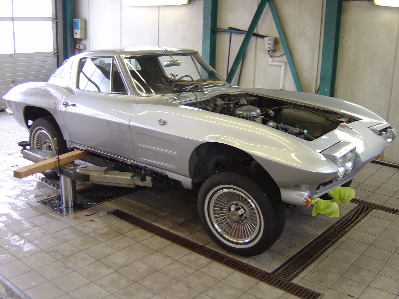Bei dem folgenden Projekt – Corvette C2 Split Window – handelt es sich um eine Frame off Restauration, infolge Durchrostung des Chassis. Der Fahrzeug wurde komplett zerlegt und soweit wie möglich, die Originalteile restauriert und wenn nötig ersetzt. Bei dem Chassis Rahmen z.B. handelt es sich um ein Original Ersatz aus den USA. Deutlich zu sehen auf den Bildern, sind die versteckten Rostschäden.